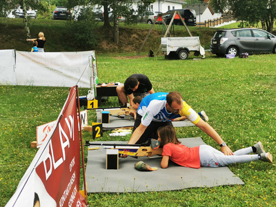 Mit Laser- oder original Biathlongewehre für Kinderbewerbe konnten die Kinder und Jugendliche sowie auch einige Erwachsene im Rahmen der Ferienspiele das Schießen auf Wettkampfscheiben üben.