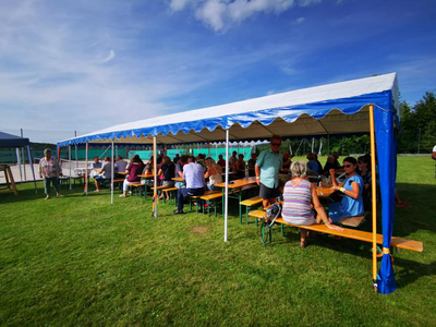 Für die musikalische Umrahmung sorgte die Trachtenkapelle Heinrichs und für das leibliche Wohl der Dorferneuerungsverein "Die Gallüßler" mit Unterstützung des Tennisvereines Unserfrau.