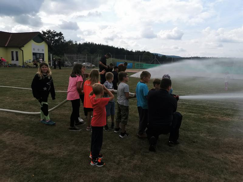 Highlights waren das Hochfahren mit der Drehleiter der FF- Wultschau und das Spritzen mit dem Strahlrohr des Wasserschlauches.