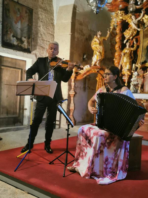 Unter dem Titel „Im Zeichen von Temperament und Virtuosität“ spielte Jaroslav Svĕceny (Geige) gemeinsam mit Markéta Laštoviková (Akkordeon) Stücke wie „Novitango“, „Oblivion“, „Vier Jahreszeiten“ oder „Ave Maria“ von Astor Piazolla, sowie auch Eigenkompositionen von den beiden Musikern selbst. Die Begeisterung der Zuhörer wurde mit zwei Zugaben belohnt.